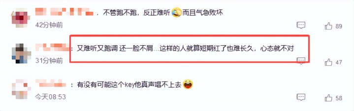 “又难听又跑调,还一脸不屑,这样的人就算短期红了也难长久,心态就不对。”