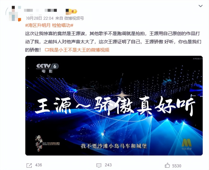 但在这次晚会上,王源演唱的自作曲《骄傲》,打破了大众以往的偏见。