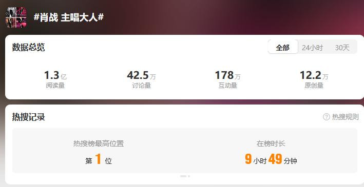 随后,“肖战主唱大人”迅速霸榜热搜,甚至冲向最高位。